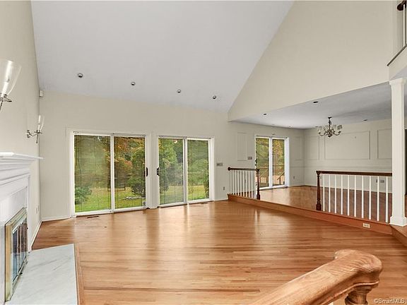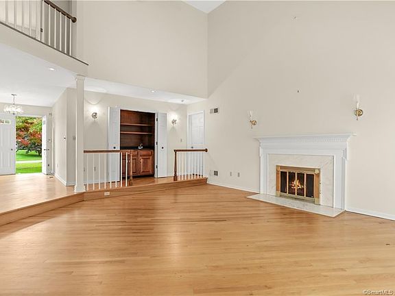 Newly offered, an idyllic cul de sac setting on established level property with charming frontage on "Ehrsam Pond" to the rear, nature abounds! The original owners designed this beautiful "Gunther" influenced colonial with a hard to find first floor master bedroom and an open concept living/dining room accented by the soaring ceiling. Front to back kitchen with extensive cherry cabinetry and second staircase to the fireplaced bonus room, adjacent home office or hobby/play/exercise space. Two family bedrooms on the second level, (see floor plan) are generous in size creating privacy/separation from the main floor, great for guests, teens or extended family! The two wood-burning fireplaces, hardwood floors and traditional moldings finish off the interior spaces. Plus a two car oversized garage with ramp and full basement offer easy access and plenty of storage. Public sewer, (assessment paid off), city water and natural gas heating with central air. So much potential at a value price in the heart of a most attractive and convenient Trumbull neighborhood location. Estate sale, sold "as is". Estate sale, property is being sold "as is" by trustee/executor.
