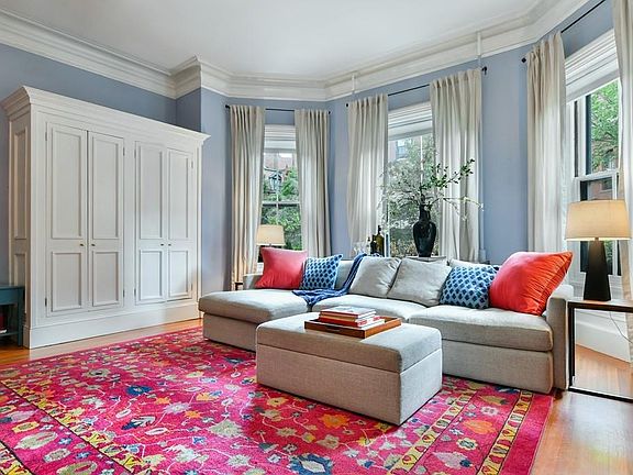 This rarely available 3 bedroom, 2 1/2 bath parlor garden duplex is in one of Back Bay's best locations, and has been thoughtfully updated. This unique building has great width and depth. The enormous 24' x 20' living room has wonderful proportions with high ceilings, a bay window, a fireplace, and lots of original detail including bookcases and pocket doors. The adjoining 19' x 16' dining/family room opens to the sleek updated kitchen which has custom cabinetry, stainless appliances, and a peninsula which is perfect for casual dining and entertaining. The spacious master bedroom overlooks the garden with a newly renovated en-suite bath, and a large walk-in custom closet with laundry. The generously sized second bedroom is very comfortable and has ample closet space. The third bedroom has custom built-ins and can be used as a nursery, guest room, or office. There is a guest bath with a shower. The private brick garden is a perfect retreat, and has been virtually staged for the listing.