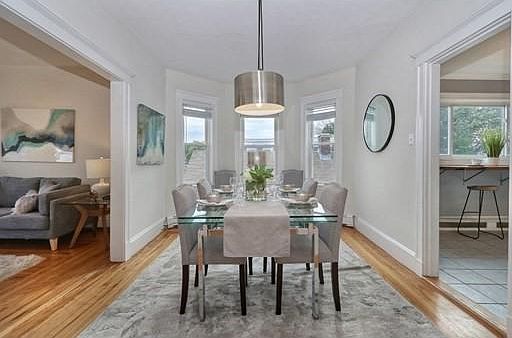 Located on a side street in Teele Square, this bright & airy top-floor unit has room to spread out - inside & out. A spacious foyer separates the bedroom wing from the entertaining spaces. Three bedrooms - or use the 3rd for a work-from-home setup. The eat-in kitchen has custom shelving, granite counters, stainless steel appliances (fridge & microwave new in 2021) & a pantry closet in the back hall for more storage. This condo gets loads of exclusive space in the basement - plenty of space for storage, exercise, a work space - what have you. Outside the driveway is all yours - you can park two cars & still have room to hang out by the barbecue come summer. In-unit full-sized washer & dryer, A/C & covered back deck. Enjoy treetop views from many windows & watch the sun set from the oversized window above the custom breakfast bar. Venture out to cafes, restaurants, shops & supermarket nearby in Teele & Davis Squares & enjoy easy access to the T, buses & commuter routes. OH Sunday 12-1 pm