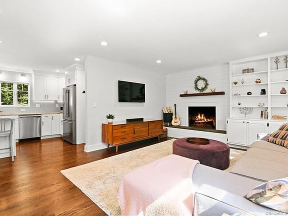"Booth Hill School District". This beautifully updated colonial with a modern, open concept floor plan offers the living space & design features so desired for family gatherings & entertaining friends. Showcased by the completely renovated kitchen w/granite countertops, center island, solid wood cabinets w/glass display accents, stainless steel appliances & tiled backsplashes, this room is sure to impress! The adjacent re-purposed mudroom with rear door access to the back yard & grade level entry into a two car garage is most convenient. Here you will step out to the fenced, irrigated yard w/stamped concrete patio, level lawn space, perennial gardens & tall forest borders abutting open space insuring your privacy. Back inside, the family room is fitted with a raised hearth woodburning fireplace, ship lap paneling & attractive built-ins. New h/w floors w/contrasting dark stain & light pallet wall paint showcase the floor plan and the additional main level home/office playroom. Off the kitchen/dining area, French doors lead to a spacious screened-in porch w/cathedral ceiling & another full view of the property. The LL is part finished for rec/exercise space & loads of storage. Second floor BDRS are all generous in size, the Master w/private bath & walk-in closet. This centrally located neighborhood is ideal. A quiet cul-de-sac enclave within walking distance to Trumbull H/S, Hillcrest Jr High & Beach Memorial Park w/over 300 acres of open space, trails & public pool. Compare!