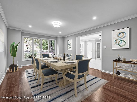 All The Work Has Been Done and now includes a $15,000 credit towards the install of a privacy fence! Prepare to be impressed with this modern & sophisticated newly renovated home situated at the end of a private cul-de-sac. This immaculately presented home boasts beautiful hardwood floors, crown moldings, abundant windows with natural light & a highly sought after floor-plan for today's lifestyle. A warm neutral color scheme is waiting for you to call it your own & features a Formal Dining Room, Living Room w/custom built-ins & gas fireplace. The beautifully appointed gourmet Kitchen with expansive dining area offers large Quartz center island, sleek cabinetry, stainless steel appliances & glass doors to the spacious outdoor deck. The 1st floor additionally offers a tucked away Office/ Playroom, a Laundry Room/Mudroom & access to the attached 2 car garage. The second floor offer 4 spacious bedrooms with custom closet systems & full hall bath. Primary Bedroom Suite features spacious walk-in closet & luxurious bath with dual vanity & glass enclosure shower. A wealth of living spaces are located in the finished Lower Level which provides ample flexibility & storage options. A remarkable opportunity to call this Holmdel address your own! Conveniently located near iconic Bell Works, MSK, NYC transportation, beautiful parks & Jersey Shore beaches