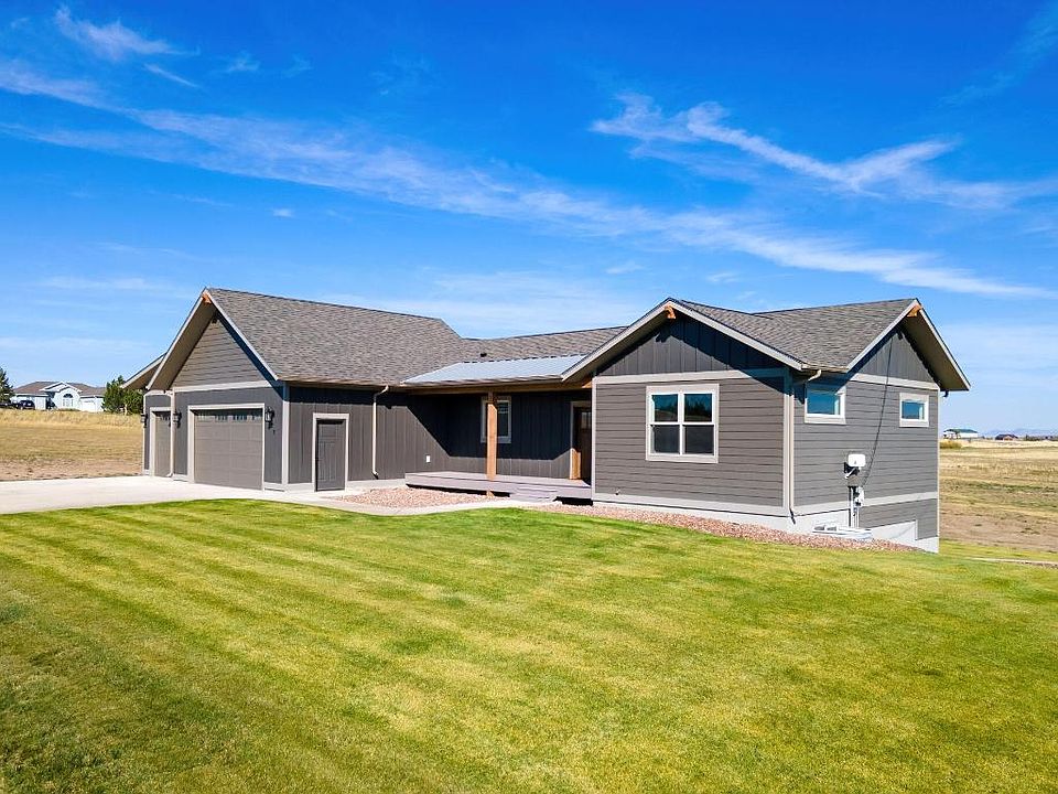 Situated on a 5 acres, this home is an exceptional choice for anyone looking to live in comfort and style while enjoying stunning views of the Little Belt Mountains. The kitchen is spectacular featuring quartz countertops, floor to ceiling cabinetry and a large island. The open concept wastes no space and connects the living spaces brilliantly for comfort, conversation and dining. The main bedroom features an ensuite bathroom with soaking tub, tile walk-in shower and large closet! 2 large bedrooms and one full bathroom finish off the main level. The daylight walkout basement features two large living spaces, wet bar, 2 additional bedrooms and full bath. A heated and finished 3 car garage offers plenty of space! Contact Ashley Friesen at 406-868-0045, or your real estate professional.