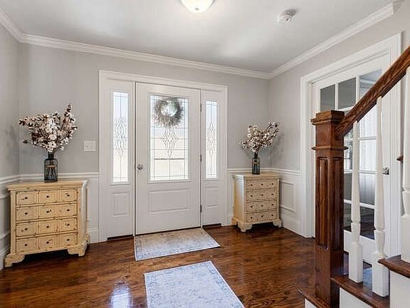 7 Fieldstone Lane offers the perfect blend of elegance and functionality with modern conveniences and high-end finishes throughout. The open-concept kitchen features custom cabinetry, granite island, stainless steel appliances, an eat-in area, & hardwood floors spanning both levels. The spacious family room boasts cathedral ceilings & a cozy fireplace. Luxurious primary suite includes a spa-like bath with a jetted tub and two walk-in closets. Two additional bedrooms, a full bath, and a dedicated home office complete the second level. The finished walk-up third level serves as a perfect media or recreation space. Additional highlights include a custom mudroom with ample storage, a walk-out basement with a half bath, and a private backyard featuring a fire pit and an upper deck ideal for outdoor dining and entertaining. Situated on over an acre lot, this home also offers an attached 3-car garage with generous off-street parking. Easy access to Routes 3, 95, & 495. A must see!