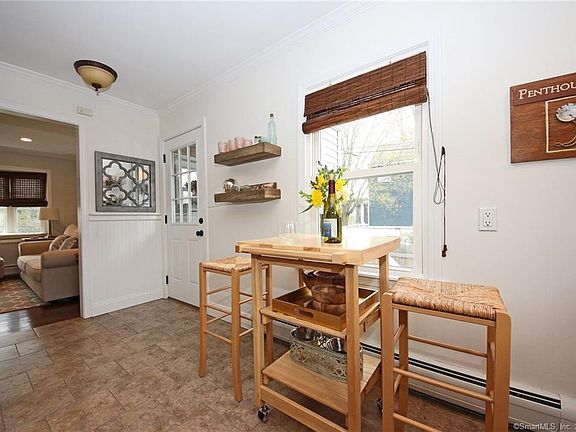 Picture perfect bungalow ranch style home located within walking distance to vibrant downtown Bethel. This home is in move in condition, totally redone 5 years ago with great trim detailing including wainscoting, crown molding, new kitchen, stainless appliances, bath, hardwood flooring and central air conditioning. The property is level, totally fenced in with gardens ready for summer planting! Interior features include an eat in kitchen, light and bright living room with bay window and two good sized bedrooms. Great commute location, perfect starter home, condo alternative, easy carefree living can be yours with this home! Additional features include interior painting last year, roof and oil tank 5 yrs old, furnace updated plus full basement and attic for storage. There is nothing left to do but call this home! The shed behind the home is part of the property. Additional parking is available in front of the shed. Owner related to agent.