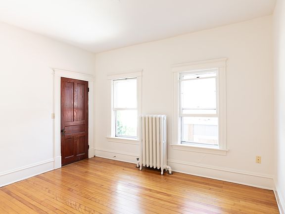 First-floor, two-bedroom apartment with a large living room and open kitchen layout. Kitchen includes electric range and dishwasher. Original hardwood floors throughout. Both bedrooms have closets. One full bathroom with custom-tiled shower and built-in storage. Access to shared front porch. Laundry in building. Gas heat and gas hot water. Located one block from UVM and Fletcher Allen Hospital.
