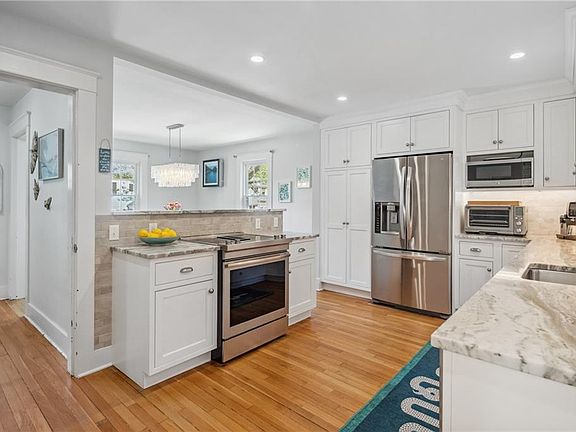 Welcome to this charming colonial home located on a tree-lined residential street off of Ruggles Avenue. The main level boasts a spacious, yet manageable floorplan. A formal living room with beautiful natural light invites you either outside to a lovely private oasis or through to an updated kitchen, featuring marble countertops, newer stainless appliances, and excellent storage options. The kitchen effortlessly flows into an inviting dining room but also into a large den, complete with a working wood fireplace, butler’s pantry, first floor bedroom and full bath. Up the main stairway, you will find three nice sized bedrooms that share a full bath. Ascend to the bonus semi-finished attic, offering endless possibilities such as a bunk room, office, or exercise studio. True delight awaits in the primary suite, accessed via its own private stairway. A neutral, peaceful pallet of grays and whites – all freshly painted- greet you as you step into this haven of relaxation. A new custom walk-in closet with laundry adds convenience, while the ensuite bath features a tiled walk-in shower and a generous private covered deck, ideal for enjoying morning coffee. The lower level features a finished basement with a full bath plus flexible space for lounging, work or exercise. Outside, a large bluestone patio beckons for al fresco dining and leisurely gatherings. Equipped with solar panels and air conditioning, this captivating colonial is where charm meets modern luxury in perfect harmony.