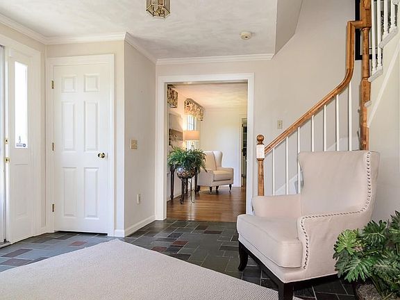 This handsome brick-front Colonial is majestically situated on a private, ended way in a coveted Wayland location. The floor plan is ideal and has something for everyone in the family. There is a front-to-back, fireplaced living room, elegant dining room, private office and sun room with walls of glass and gorgeous views to the outside. The eat-in kitchen, with its granite countertops and rich cherry cabinets, has an adjoining family room with vaulted ceilings and impressive stone fireplace. The second floor offers a generous master suite with an updated bath and walk-in closet as well as three well-proportioned, family bedrooms. The finished lower level features play and bonus rooms with a wood stove, desk area and great storage. Enjoy the outdoor space, which includes a relaxing deck, expansive grounds, mature plantings, picturesque stone walls and serene backyard. A beautiful home in an idyllic spot, plus it's priced below assessment!