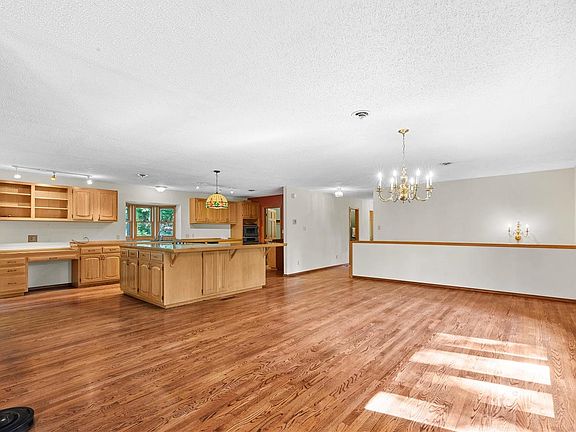 Looking for privacy yet want to be in a convenient location near easy Hwy access, schools, shopping and services? This 4 BD, 3,5 BA, 2 story home has over 4,600 s/f of living space, 5.93 wooded acres and a huge 3+ car garage with a 22x35 Loft area for storage. The ext is predominantly brick. Enjoy the outdoors on 3 composite decks (all 5 yrs old). Features inc an open plan, island w/brkfst bar, SS appl, downdraft c-top, hardwood flrs, main flr Office, main flr Laundry, DR w/bay window, Grt Rm w/vaults to 16 ft, 2 FP, lux Mstr Bath, sep tub-shower, dbl bowl vanity, large bdrms, shared bath upstairs, vaulted clngs, all electric home, geothermal heat/cool and more. The LL has a Fam/Rec Rm (needs flooring), B/I bookcaes, FP, bdr and bathroom. Possibilities are endless w/decks, stone patio, gardens, huge garage and tons of living space. New septic system in July 2023. AS-IS sale with the seller to make no repairs. Mature trees, cul de sac, private streets, full brick home and max privacy. Additional Rooms: Mud Room