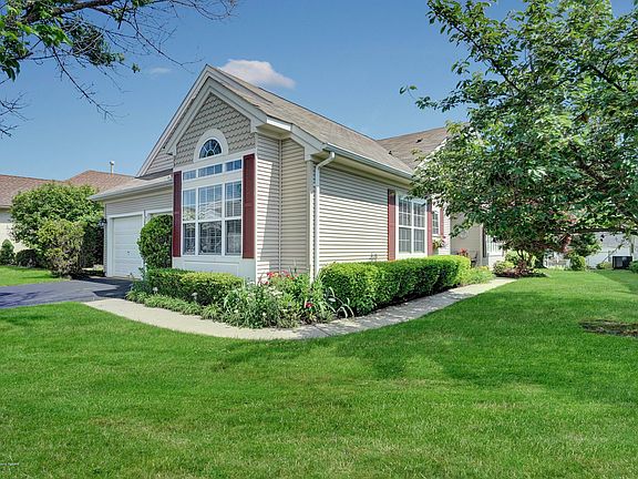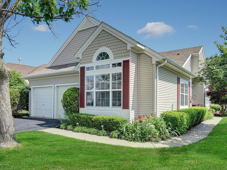 Very popular Florence Model located on the edge of the cul-de-sac .Professionally landscaped.,trees providing privacy. This home was recently painted with neutral colors. Wood laminate hand scraped Hickory Pergo Max. floors in the kitchen, living room dining room den and hall. New Hunter Douglas blinds and Plantation shutters. Bedrooms recently carpeted. The kitchen features a new microwave and stainless steel appliances. New clothes dryer too. Doors and lighting recently up dated as well. Granite vanity top in the hall bath. Thee Florence model has an eleven foot entry ceiling, and cathedral ceiling in the den. Renaissance is an active 55+ community with golf, tennis, bocce, indoor and outdoor pools. The clubhouse is award winning with a convenient café-deli.Loads of clubs, activiti