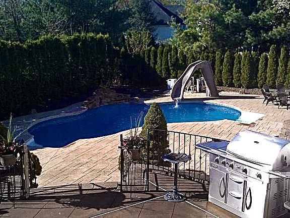 Elegant and stately, brick-front home on a quiet cul-de-sac in one of the area's most desired neighborhoods! Enter the grand two story foyer with impressive focal staircase to the wonderful open plan, perfect for entertaining with ample & beautiful living spaces both inside & out. The spacious custom kit w/center Island, eat-in area, w/in pantry, SS appliances, opens to the family room with access to the expansive rear yard, w salt water pool & slide! Upstairs find a gorgeous master suite featuring tray ceiling, walk in closets, relaxing bath w/jetted tub, and stall shower. Three add'l beds, a built in office area & shared main bath complete this level. Don t miss the partially finished, walk-out LL w rec room/play room & tons of potential! Main level, Pool area and LL wired for sound. Less than 30 min to NYC!