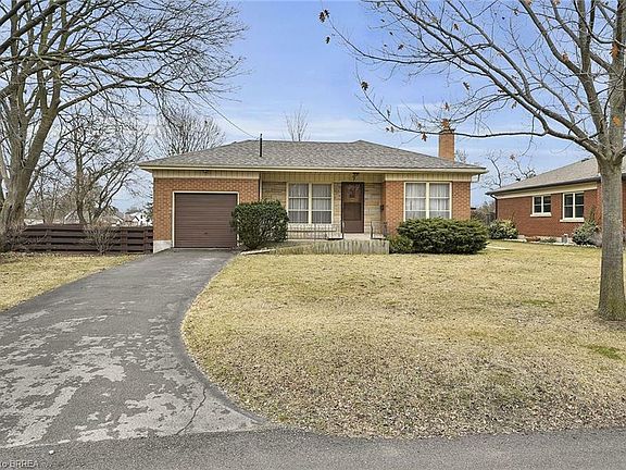 Welcome to 7 Franklin Street in Brantford, a stunning, well maintained brick bungalow on a large pie shaped lot with a 63ft frontage in one of the city's most sought after neighbourhoods. With 3 generous sized bedrooms and one and half bathrooms this home boasts nearly 2,000 square feet of living space to suit all of your needs, whether it's hobby space or a home office. The moment you step inside, you'll be greeted by a sense of warmth and coziness with large windows, original hardwood floors and a gas fireplace that invite you to make it your own. Families with children will appreciate the convenience of this location on a quiet street, backing onto Devon Down Park and with many fantastic schools nearby. The exceptionally large, south facing, fenced in back yard is a great place to play, watch the sunset, grow a garden or putter in the large shed (10ft x 6ft) complete with hydro and a concrete floor. All amenities are within walking distance, whether it is groceries you need, medical facilities, shopping or public transit with easy access to the 403. This home features a fully finished basement with a second 2 piece bathroom, a newly installed heat pump, state of the art thermostat, extra attic insulation and newer roof shingles (2022) to keep your home heating and cooling bills to a minimum. All this and great neighbours too! Welcome home.* The Seller discloses that there is a filled in inground swimming pool located in the backyard directly behind the 2 back bedrooms.