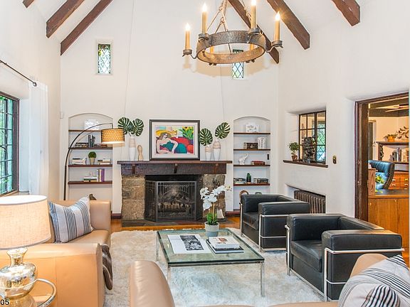 This English-style Tudor house beautifully combines old-world charm with modern comforts to create a stylish and unique home. The formal living room has soaring cathedral beamed ceilings and an impressive stone FP flanked by built-in bookcases.The formal DR has built-in cabinetry & exquisite leaded glass windows. The floors of the EIK are laid w/ reclaimed barn-wood from the Shenandoah Valley. An Aga oven stands center stage, surrounded by a suite of pro-grade appliances. The open EIK leads to the FR w sliders to the backyard. Hidden bookshelves separate the FR from the home office. The MBR features 2 WIC & full BA. 2 add'l BR, a full BA & laundry area complete the 2nd level. The finished LL has an in-law suite w/ kitchen, BA & laundry. Lush backyard w/ pond. Newly built 2CG. Copper gutters throughout.