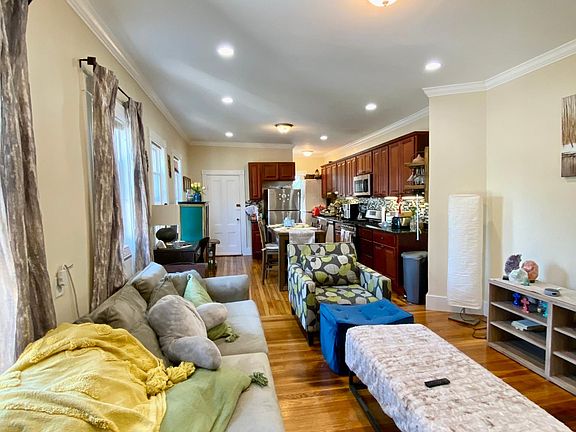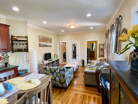 2BD/1BTH features a renovated eat-in kitchen with granite countertops, stainless steel appliances, a dishwasher, disposal, and microwave. The spacious living and dining room combo boasts hardwood flooring and high ceilings throughout, with oversized windows providing ample natural light. The property includes an exceptionally large master bedroom and an additional room that can be used as a walk-in closet or office. There is also a shared yard common space. Located on the Waltham/Newton line, this rental offers easy access to the Mass Pike, Route 95, and the Waltham MBTA station, and is just one block from the famous Moody Street. 12 months