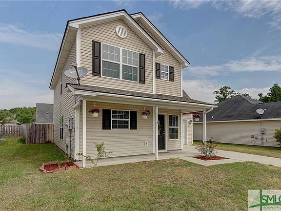 This beautiful & spacious home features 3 bedrooms/2.5 baths & a bonus room. Fresh paint throughout!! All bedrooms up with cozy carpet. Kitchen opens to large living/dining room with wood laminate flooring. Stainless steel appliances, new refrigerator. Sliding glass doors open to a covered patio area, spacious fenced yard & large storage shed. Pet friendly with approval. 1 car garage with automatic opener. Close to Gulfstream, I-95, Pooler & Outlets, Dining, Entertainment & much more. Playground in community. Available Now!