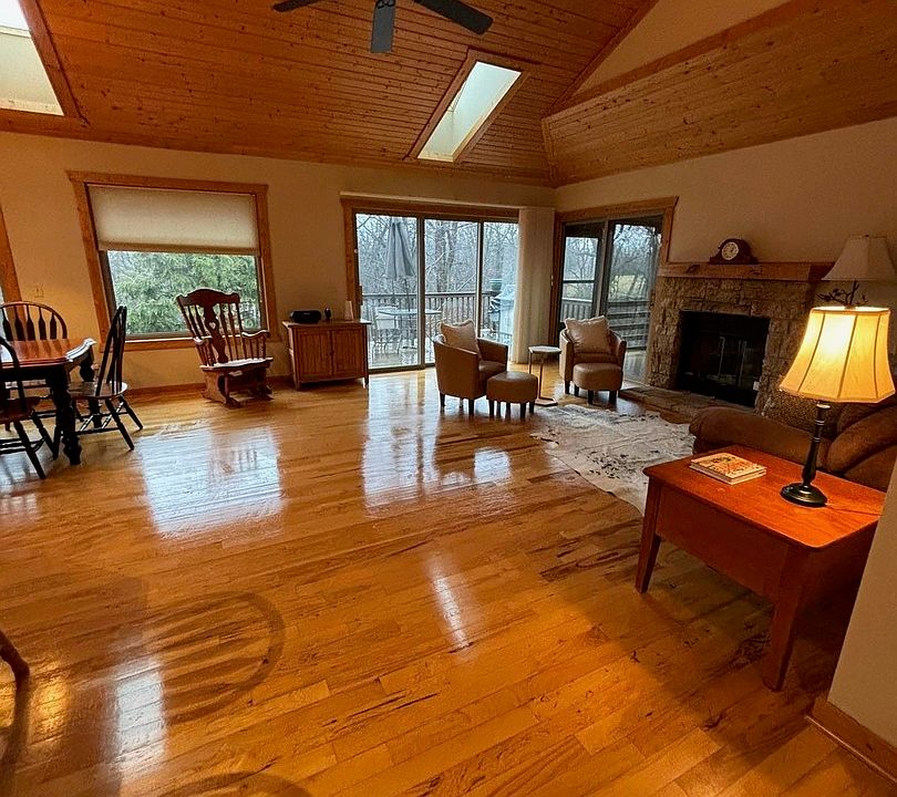 Welcome to the perfect Galena Getaway!! Tranquility at its finest! A true Ranch with Walkout Basement, Vaulted Ceilings, Open Concept living! 3 Oversized bedrooms each offering on-suite bathrooms plus a half bathroom! Upon entering you are greeted with high ceilings, real wood floors and doors and a super cozy family room with fireplace! Brand New Carpeting, New LVP flooring in lower level! Freshly Landscaped and ready for new owners! Nothing to do but MOVE IN!