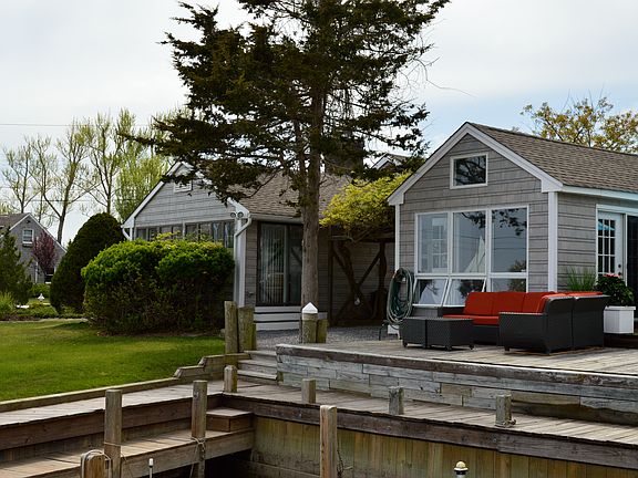 On the water in Hampton Bays! Serene location in a neighborhood of multi-million dollar homes. Two (2) Bedrooms, Third Bedroom is currently used as a great room, but can easily serve as a Master Bedroom with bathroom, washer and dryer en suite. EIK, living room with fireplace, great room/3rd bedroom, sun deck, detached studio-style cottage with two private boat slips. Brand new roof, brand new cedar shake siding, brand new energy efficient CAC system. Canal offers direct access to Shinnecock Bay which offers further access to both the Great Peconic Bay and the Atlantic Ocean. Hop on your bike or in the car and you are minutes from Ponquogue Beach or any of the other beautiful ocean beaches in the area. SELLER FINANCING possible for qualified buyer. Property immediately adjacent is also available for sale- you can own the entire end of the canal!