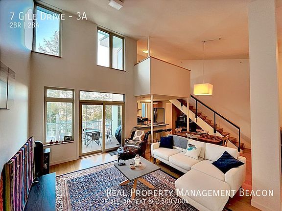 Modern design, top floor, 2 bed, 2 bath condo with large loft, outdoor deck, and spectacular views of the Upper Valley in a LEED certified building. granite countertops, stainless steel kitchen. Two minute drive or 10 minute walk to DHMC