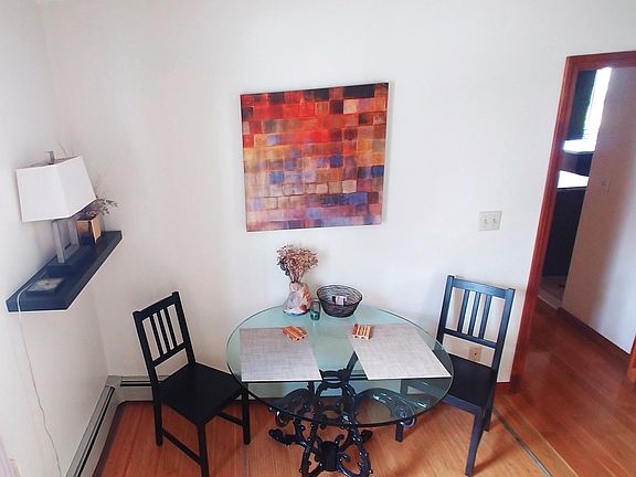 Furnished bedroom in secluded second floor of owner-occupied apartment. Shared kitchen with 3 other people. Bathroom is shared with one other person. The room is for one person only. All utilities included--internet, gas, electricity, water. AC available for additional $25 per month. Shared coin-operated laundry. The house is convenient for public transportation, 2 blocks from the 97, 104, and 109 buses. Street parking or bike parking (in a garage) available. Month-to-month agreement. Credit (minimum score 650) and background checks required. To move in: first month rent + $500 security deposit. Available August 1st. All utilities included--internet, gas, electricity, water. AC available for additional $25 per month. No smoking or pets.