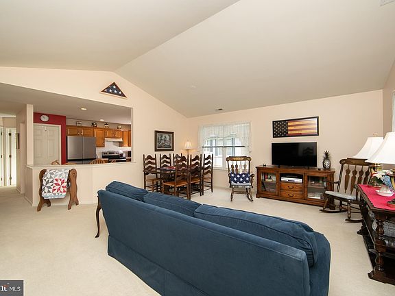 Beautiful ranch home with neutral decor in desirable Heritage Village, 55+ community is ready to welcome its new owners. The property offers an open layout with 2 nice-sized bedrooms and two full bathrooms. Enter through the front door into the living room/dining room area with vaulted ceilings and two large windows providing plenty of natural light. Continue to the eat-in kitchen that's open to the dining room with a stainless-steel stove/oven and refrigerator, and a large pantry. The main bedroom has its own full bathroom and walk-in closet. The second bedroom has two closets, a slider to the backyard, and patio. Second full bathroom and linen closet are conveniently located in the hallway by the living space and bedrooms. You will love the separate laundry room, coat closet, and 1-car garage with built-in shelving for plenty of accessible storage. There is additional attic storage accessed by pull-down stairs in the garage. Lawn care and snow removal are not provided by the HOA. Make your appointment today, it won't last long.