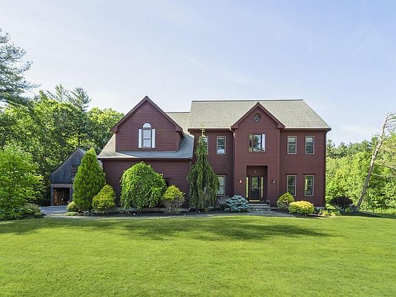 This stunning home in serene country settings with sprawling lawns, gorgeous landscaping, pond and cranberry bog on a 5+ acres lot can be all yours. A 2-story foyer and a beautiful staircase welcome you upon entry. Main floor boasts clean contemporary finishes, open-concept living, refinished hardwood floors, oversized kitchen w/modern white cabinetry, new SS appliances, a center isle, eat-in dining and w-in pantry. Vaulted ceilings and glass windows in the family rm offer gorgeous views of a tree-lined backyard. Formal dining and living rm w/crown molding, home office and ½ bath complete a tranquil living. Upstairs has 4 bedrooms. Master has vaulted ceiling, sitting area w/skylights, projector/screen for movies and a huge master bath w/soaking tub. A large deck perfect for entertaining. Let your creativity run wild w/ a 2-story barn. A shed and oversized garage offer plenty of storage. Located in the prestigious Goss Pond Estates with trails, ponds and streams. You must see in person!