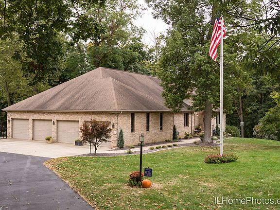 Beautiful quality built home on a wooded lot in Elkhart Hill Estates. All brick home featuring large rooms and an open floor plan. Split bedroom floor plan with a very nice extra large master suite with 2 walk-in closets. Spacious master bath offers whirlpool tub, walk-in shower, double sink vanity, closet with roll out shelves, makeup vanity, granite, washer and dryer, radiant heated tile flooring and crown molding throughout. Large living room with floor to ceiling stone wood burning fireplace and a built in butlers pantry with granite top and under counter LED lighting. Granite counter tops in kitchen with LED under counter lighting, SS sink, new SS kitchen appliances February 2016 (refrigerator, range/oven, wall oven, dishwasher), disposal, pull out trash cabinet, appliance garages, 2 lazy susans, and a charging station along with 2 lateral file drawers. Dining Room features a wet bar. Whole house vacuum system. Large screened in porch with ceiling fans. A 1500+ SF 4 car garage with a large work bench, storage cabinets and pull down attic stairs for additional storage. The original laundry room has been converted to a very nice walk in pantry. Great location. This home is located with easy access to I-55 with a 15 minute drive to both Springfield and Lincoln. A must see! This is an AGENT OWNED PROPERTY.