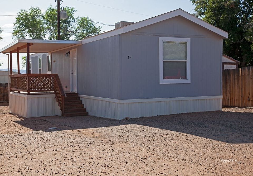 We've heard your requests and Lake Powell Mobile Home Park has delivered! Finally, a 3 bedroom, 2 bath single wide mobile home on a quiet lot! This 2016 home has barely been lived in and will give you plenty of opportunites to make your own memories for years to come! Enjoy the spacious, well-constructed front deck as you walk in the front door into a large open concept living room leading into a cute, low maintenance kitchen. The split floor plan provides plenty of privacy for the master bedroom and master bathroom on one side and the two smaller guest bedrooms and guest bathroom on the opposite side. You won't find a better value in Page! Schedule your personal showing today! We have other homes, both new and remodeled, for sale. Park rent is $465.00 plus 3% sales tax per month. Owner financing is available, call for details.