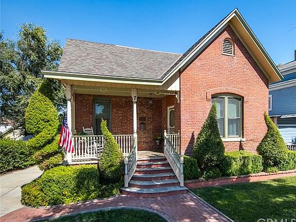 VOILA! SOUTH REDLANDS LOVELY VICTORIAN BRICK COTTAGE - CIRCA 1890. located in the historical district of Redlands. This home was restored to perfection with a newer kitchen and appliances, newer bathroom with period accents, newer flooring and an upgraded central air and heating system. Newer wiring, windows and roof too! The Front porch is very inviting and has beautiful architectural details on the posts and railings! Enjoy the ambience the formal living and dining area offers when entertaining guests with it's tall ceilings and long double hung windows. The home has a unique set up that provides for an EXTRA SPACE OF 746 SQ. FT. ON THE LOWER LEVEL that can possibly be utilized as a home office, game room, gym or workshop. Close to downtown shopping/ restaurants and only 1 block to the Smiley Library and the famous Redlands Bowl! THIS HOME IS A GEM!