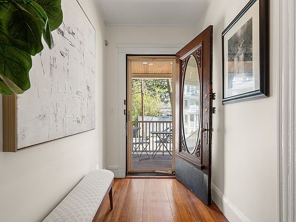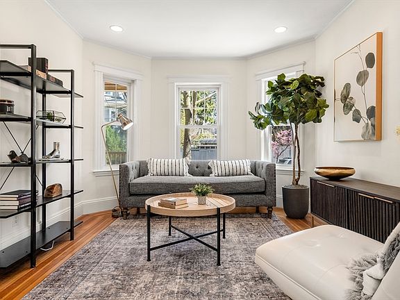 Sited in the heart of Huron Village is this lovely first floor 2 bedroom 1 bath home with gorgeous hardwood floors and high ceilings throughout. The condo has a beautiful front door that opens to the airy foyer. The foyer leads into the sunny living room with a bay window. Off the living room is a generously-sized formal dining room with its own bay window and built-in china cabinet. The kitchen has stainless steel appliances, a gas stove and plenty of storage, including a separate pantry. Off the kitchen is access to a private back porch overlooking the professionally landscaped shared yard. There are 2 bedrooms, each with 2 large closets, plus a tiled hall bathroom. Enjoy deeded storage in the basement. Living here offers easy access to Formaggio Kitchen, Bryn Mawr Book Store, Graymist Studio, Base Crave, and so much more. Within a half mile radius of Fresh Pond Reservation and Danehy Park. Also close to the Huron Avenue bus stop to Harvard Square, and Whole Foods and Trader Joes.