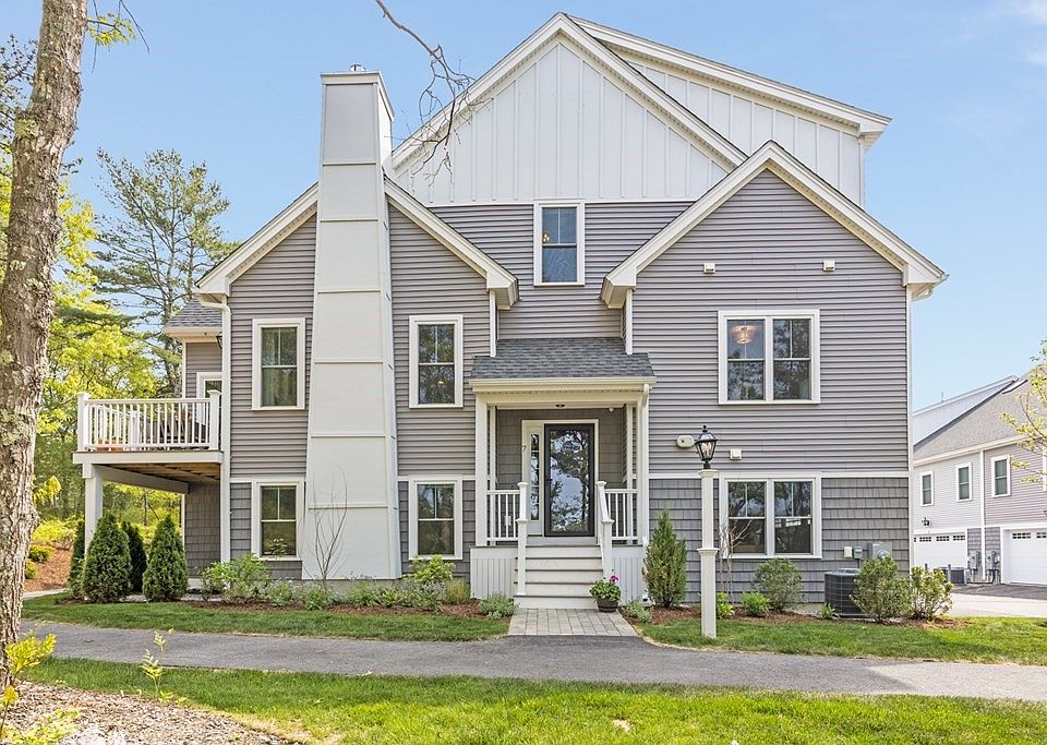 Showcase Home!! Better than new Binnacle w/ modern design features & upgrades galore. Located on a private corner homesite w/ wooded views in the Symington Woods neighborhood inThe Pinehills. Kitchen has bright white cabinets w/ mullion glass accents, quartz countertops, contrasting dark gray center island cabinetry, Viking gas range & hood, Fisher & Paykel double dish drawer, commercial faucet, & a pantry. 3 heating & cooling zones, hardwood flooring on all living levels, & smooth coated ceilings throughout this stunning home. Dining area, family room w/ gas fireplace, slider to deck. Powder room also on the main level. The main bedroom suite w/ full bathroom is located on the main level. Guest suite w/ full bath and large loft are located on the second level. Spacious finished lower level bonus room w/ 5 windows, motorized shades, and wood views. Access to the two car garage with utility sink is from the lower level. Walk to Village Green & Pinehills amenities.