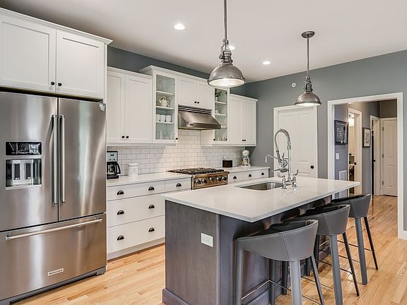 - Features: Flooring - Hardwood, Pantry, Countertops - Stone/Granite/Solid, Countertops - Upgraded, Kitchen Island, Cabinets - Upgraded, Open Floorplan, Recessed Lighting, Stainless Steel Appliances, Lighting - Pendant, Crown Molding
