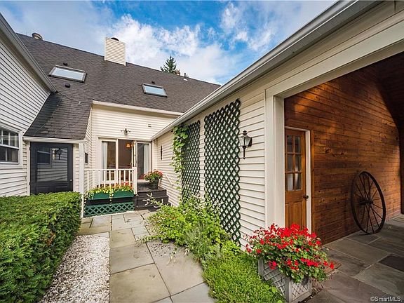 All the convenience of Condo living in an estate setting. Delightful 3 bedroom, 2.5 bath carriage house unit sited on legendary Great Elm estate with top amenities(large heated pool, tennis court, paddle court) amidst spectacular grounds of mature trees and beautiful landscaping. Main floor has living room with 11 foot ceiling and gas fireplace opening to private deck and gardens. Spacious first floor master bedroom suite has bay window and built in bookshelves. Kitchen with adjacent laundry opens to light filled dining room. Second floor features generous bedroom with balcony overlooking gardens, hall bath and second bedroom with built-in storage. Additional features:Central air, main floor half bath, adjacent 1 car garage and guest parking. Close to fine restaurants, summer theatre, farmers' market, outdoor recreation, top Prep schools and 10 minutes to Metro North. Two hours to NYC. Ideal for a country getaway, downsizing option or fulltime easy living.