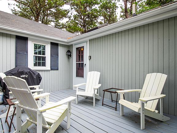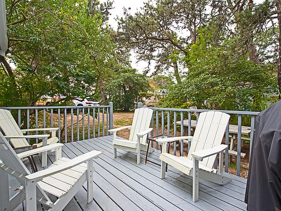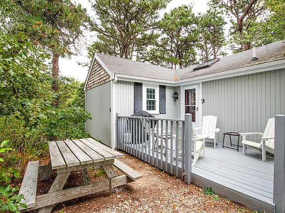 A 3-season treasure in a well-managed condo complex, everything you'll want for your perfect Truro getaway. Among the oaks and pines, this privately sited two-bedroom, one bath cottage with vaulted ceilings, has a bright and open plan with light coming in from windows on all sides, multiple skylights and a slider overlooking the exclusive back deck. Enjoy Summertime fun and watch the changing seasons from both the front and back decks, overlooking wooded areas and treetops. And for evenings, there is a propane wood stove to take the chill out of the air. With Great Hollow Beach only .5 mi. away and association amenities including playground, basketball, tennis & pickleball courts this freestanding cottage is the ideal place to spend relaxing time with friends and family. Low monthly fees, 2 parking spaces, pets for owners and weekly rentals allowed. Cottage is being sold turn key - pack your bags and move right in!