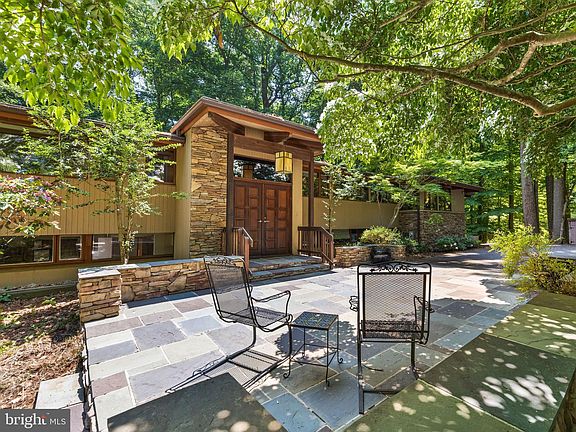 Incredible DECK house in an amazingly private location in much desired Stevenson. Modern with tons of windows overlooking trees with so much privacy. This home was built to blend into the environment, not stand out. Very private court off a long and gently winding road. Upon entering the welcoming foyer, you head up a few steps to a vast living room overlooking trees and a sumptuous pool. The living room has a cathedral ceiling with beams, a wood burning fireplace as well as access to a huge deck. A relaxing den is off the living room for more casual living that includes 2 skylights. Flowing gently to the oversized dining room, you will find another bank of windows overlooking the deck and back yard. Custom valences match the 10 chairs that convey with the 2 dining room tables and rug. The centerpiece of the dining room is the custom built in. Absolutely mind blowing, truly a piece of art. Next is a large 3 sided relaxing sunroom, which makes for a peaceful casual breakfast area. There is a side entrance that the sellers use, that has a mudroom and tons of closets. In todays hectic world, this office has all the space any professional would want and overlooks the front yard. Then we get to the gourmet kitchen. Supersized with tons of beautiful custom cabinets and storage closets that will blow your mind. Really, the craftsmanship in all the custom cabinetry is truly unique and beautiful. Besides a powder room on this level, there is the primary suite which comprises of a huge bedroom filled with sunshine, two closets and a primary bathroom with a custom tiled shower. And this is all on the main floor! Heading to the lower level is 4, count them, 4 additional bedrooms and a full bath which has a tub. The family room has a second fireplace and lots of built ins, as well as a homework area. Plus the sliders open to the backyard and the pool. The pool is wonderful with summer coming, either relax in the water or on lounge chairs on the surrounding area of the pool. This level has 2 large storage rooms, as well as tons of room for more storage in the laundry room. And not to forget, storage under the stairs. And another half bath to boot. Outside there is a small shed for the pool equipment. Photos as great as they are do not do this house justice. You really need to see this incredible DECK house in person. Selling "as is".