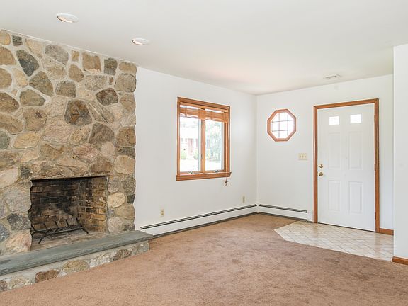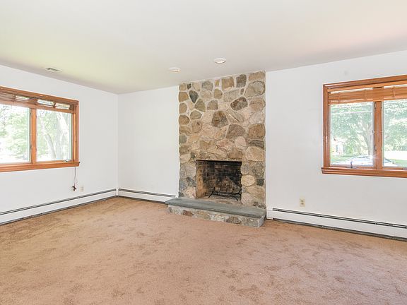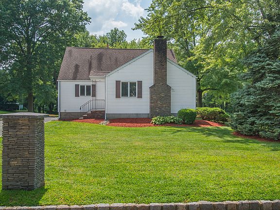 Bright and sunny unique cape. 3 large bedrooms and 2 full bath. Large living room with floor to ceiling stone wood burning fireplace, formal dining room and eat-in kitchen. Backdoor in kitchen leads to outside patio. Hardwood floors, new carpets in bedrooms and recessed lights. House is freshly painted. Nice level backyard with patio with lots of privacy. Great school system.