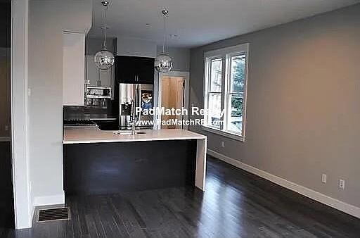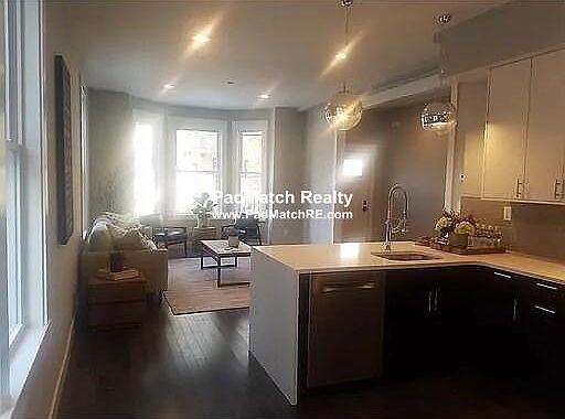 Fantastic 2 bedroom, 1 bathroom unit in a sought after JP location! Completely renovated 2 bed and 1 bath condominium is the one you have been waiting for. Living room/kitchen open floorplan. 9' ceilings throughout, great space for entertaining. The modern Kitchen area features a White QUARTZ Waterfall 8' breakfast counter and stainless steel Chefs Kitchen Appliances. Hardwood floors throughout. Central air and heat. Dedicated rear porch/deck in the back of the unit. Laundry room with washer & dryer. One large bedroom with a smaller 2nd bedroom. 1 deeded driveway parking space included. A commuters dream location on a private, dead end street and one block away from Green T Station. First Month $2,800 Last Month $2,800 Security $2,800 Application Fee $30 Key Deposit $100