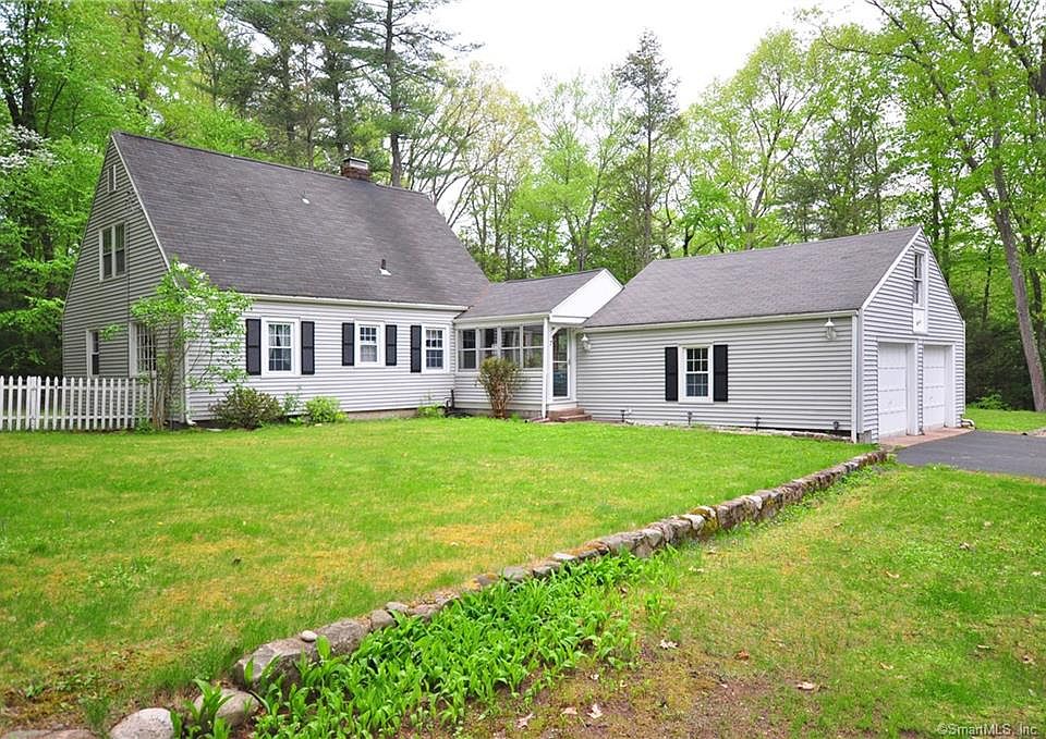 Adorable, Affordable cape in prime Simsbury location Last house on a small cul-de-sac, this charmer has a big private back yard, with a fenced area and a party-sized fire pit The living room has hardwood floors, built-ins and a fireplace, with a brand new sliding door to the oversized deck. There's a main level bedroom and full bath, a dining room and a bright sunny kitchen. The enclosed porch connects the house to a two car garage with walk up attic, great for storage or expansion. Upstairs are two more large bedrooms and another bath. There are replacement windows and a new Buderus boiler, making this an energy efficient home. Walk down the street and find the entrance to Stratton Brook State Park Convenient to everything, this is a great value and perfect place to call home