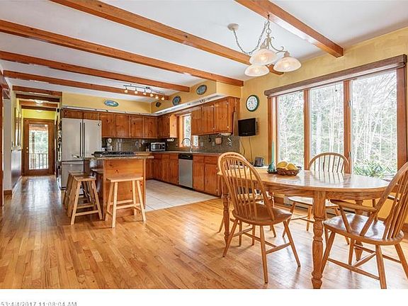 Efficient passive solar 3/4 bdrm home with character on private 2.36 acre lot in Falmouth neighborhood. Offering - updated kitchen w granite open to living/dining area with wood stove, stunning large windows to lovely grounds & nature, beautiful beamed ceilings, gorgeous HDWD floors, family room w gas stove, bonus room in bsmt, screen porch, deck, stonewalls, patio, insulated art/work studio in garage, access to trails, storage in basement & above garage. High quality construction, not a cookie cutter home!