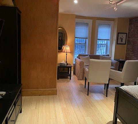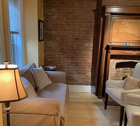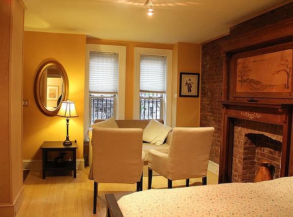 Hampton Court brownstone studio with private garden access. Just two blocks to Grove Street path in downtown's Van Vorst Park section of Jersey City, the spacious studio has large front living room area, well designed E.I.K., renovated bath, and reading nook/office area. Exposed brick, wood floors and mantle add to the charm of this historic home. Pets OK. Offered furnished, unfurnished, or partially furnished at $2200 per month, including heat, cooling, and hot water. Offered furnished/unfurnished or partially furnished. Utilities incl. No Smoking. Pet friendly. 1 1/2 mo. security, 1st. mo. rent plus 1mo. broker fee.
