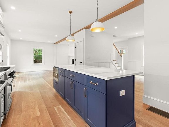 Beautiful apartment for rent. The first floor features high ceilings and an open-concept layout with kitchen, dining, and living areas. The kitchen offers Viking appliances, shaker-style cabinets, and quartz countertops. Additional highlights include a first-floor bedroom, full bath with laundry, and wide-plank oak flooring throughout the first and second floors. The second floor showcases a primary suite with vaulted ceilings, shiplap walls, fireplace, walk-in closet, and a master bathroom with double vanity and walk-in shower. 4 spacious bedrooms, 3 full bathroom, and an additional large bedroom that is ideal for an office. The fully finished basement provides a mudroom, half bath, laundry hook-ups, and a large versatile space suitable for a gym, playroom. A new patio and backyard offer outdoor living space for gatherings and entertaining.