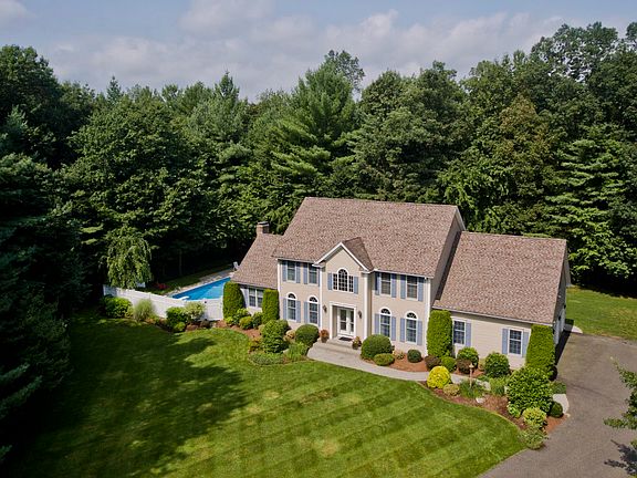 Luxury awaits you! This expansive Colonial has space for everyone! As you enter, you immediately feel at home. Large dining room with columns and arches, oversized living room with fireplace and slider to patio/pool area, wonderful entertaining kitchen with island, eat-in area and sliders to patio/pool area. 2 first floor offices for work or schooling from home! Half bath with tiled floor and laundry. Second floor has 5 bedrooms and 3 full baths! Master bedroom with hardwood floors, master bath that has double sinks, water closet, shower and walk in closet. 4 other bedrooms all have hardwood floors and generous closet space. Home is wired for sound inside and out for all your entertaining needs! 18x36 IG pool and patio, 3 car garage, partially finished basement with wall to wall carpeting and an area with industrial rubber flooring. Initial viewing to be via video and/or virtual showing.