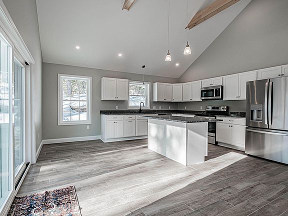 Welcome to 7 Harvest Lane, where thoughtful design meets convenience with this single-floor layout. Tile floors throughout the home with radiant heat offers the feeling of ultimate comfort and coziness during the cold Winter months. The open-concept kitchen and living room provides plenty of natural light with ample windows, a large sliding glass door and cathedral ceiling for a spacious area perfect for gathering with family and friends. The master bedroom boasts its own bathroom with a double sink vanity and a large walk-in closet.