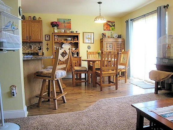 The artist in you will adore the look of this condo full of quality upgrades including colorful tiles, wood accents and finished lower level with electric fireplace, craft area and built-ins even for the aquarium. Hickory hardwood and tile flooring, new carpeting, lighting, hardware, and freshly painted. The extended patio is great for outdoor barbeques. Plenty of storage space too.
