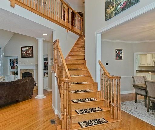 This impressive 5 Bedroom, 4 full bath, Contemporary Colonial with a 3-car garage located in the Munger Hill Neighborhood has so much to offer! Upon entering the Opulent Two-Story Foyer you'll find a Living Room with Cathedral Ceiling, fireplace and built ins. The Open Floor Plan flows into the Kitchen with a walk-in Pantry, Center Island, and a family room with a gas fireplace. There is also a First Floor Laundry, bedroom, newly renovated full bath, office, and formal dining room. The 2nd floor offers an expansive Primary Bedroom w/Trayed Ceiling, sitting area, 3 additional bedrooms, and a full bath. NEW Heat, C/Air, and Water Heater for maximum efficiency. Newly installed wood flooring on the first floor. The Finished Lower Level offers plenty of added living space for a Media Room, Beverage Bar w/refrigerator, and a Full Bath. Outside is the beautiful new composite deck, Professional Landscaping and sprinkler system. This home has it all and is steps away from the bike trail!