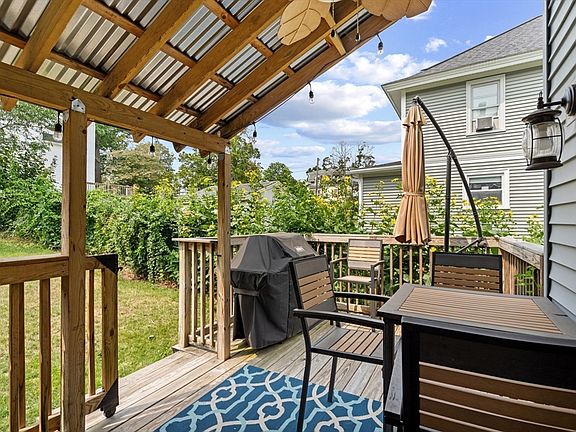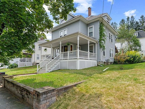 Welcome Home! This stately colonial is located in a sought after Clinton neighborhood. Your entry is enhanced with stained glass windows as you enter into the spacious dining room. Lovely fireplaced living room or office off the dining room. Updated eat in kitchen with newer dishwasher. French doors from dining room to family room with mini split and sliders to newer partially covered deck (2020) Huge primary bedroom with walk in closet. Second bedroom with absolutely huge walk in closet. Built in cabinetry! Loads of hardwood flooring! Mostly all replacement windows! Two full baths one with stand up shower and one with tub/shower with tile surround. Finished basement would be great playroom or man cave!.Brand new heating system 8/2025! Walk up attic. Nest thermostats. Gorgeous front porch to quietly relax in the evening. This is not to be missed.