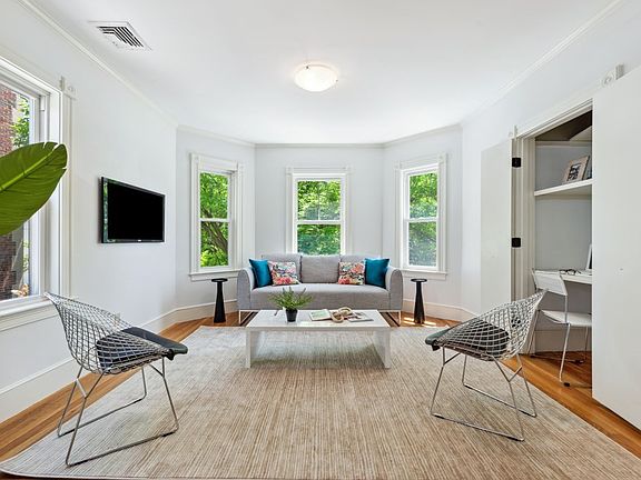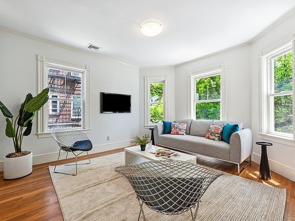 Wow! Inviting duplex on top two floors nestled on a serene North Cambridge side street, close to Porter Square and Davis Square. Bright front living room and spacious dining room create an ideal space for gatherings. The kitchen, with a cozy eat-in area, leads to a private rear deck, perfect for summer evenings. A sizable bedroom with walk-in closet and a full bath also grace the main level. Upstairs boasts a delightful primary suite with cathedral ceiling and a cozy sitting room. Enjoy in-unit laundry; central AC; lower level storage; off-street parking for one car; and access to a shared back yard garden area. Walk Score® 97 - "Walker’s Paradise – Daily errands do not require a car." Enjoy easy access to Pemberton Market at the end of the street. A quintessential Cambridge home. Move right in!