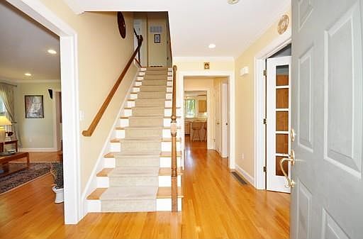 Custom built Center Entrance Colonial in an excellent neighborhood! Open concept means fantastic flow and livability. Gorgeous kitchen with island, opens to an eating area and flows right into the family room with cathedral ceilings, fireplace, skylights, sliders " all overlooking the backyard and offering views of Arlington Reservoir! Off the kitchen is the must-have mud/laundry room. A large dining room can accommodate big family dinners. Flanking the staircase are a living room w/ crown moldings & office/playroom w/ French doors. Upstairs are four big bedrooms, full bath and huge master suite, complete with a closet-room and master bath. A walk-up attic provides great storage space. The finished basement is enormous with two large living areas and a full bath " space is not an issue! Beautifully landscaped with stone walls, lush grass and a shady yard with patio. Outstanding schools, close to Whipple Hill, Arlington reservoir & public transportation - this is the one!