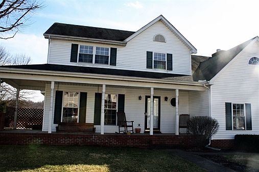 LARGE FARM STYLE HOUSE WITH WRAP PORCH. LEVEL WOODED FENCED YARD WITH COVERED BACK PORCH AND LARGE BRICK PATIO WITH FIRE PIT. SPECTACULAR STORAGE BUILDING. HARDWOOD FLOORS.