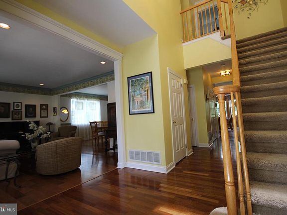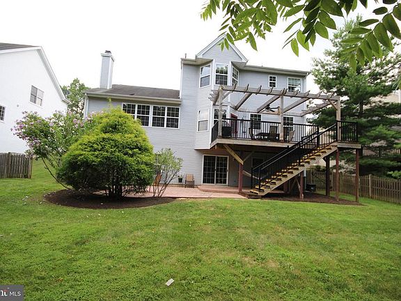 Brooks Crossing at Brandon Farms hillside Colonial with a premium location backing to woods with 4 Bedrooms and 2.5 Bathrooms, a covered front porch, custom, rear Ipai iron wood deck with Pergola, full, finished walk-out basement with a built-in entertainment center & a 2-car garage. The 2-story entry foyer leads way through the main hallway w/multiple closets, including a walk-in pantry closet, a renovated powder room & garage & basement access & opens into the gourmet remodeled kitchen & the dinette & family rooms. There are 9' ceilings on the 1st floor, Brazilian cherry hardwood flooring with 5" base moldings T/O & custom ceramic tile flooring in the kitchen and dinette areas. The formal living room features crown & chair moldings & adjoins the dining room with kitchen access. The renovated, Eat-In Kitchen features 42" cabinets w/several upper display cabinets, granite counters & ceramic tile backsplash w/accent tiles, under mount sinks, contrasting custom center island with pendant lighting, recessed lighting, LZ Susan, trash caddy, pull out shelving, all stainless appliances including a French door fridge w/freezer drawer, GE Cafe, 5 burner self-clean convection oven & a built-in micro/convection oven & dishwasher. The adjoining dinette area features a walk-out castle bay area w/a French door to the rear yard & deck. There is a customized peninsula workstation, between the kitchen and family room, complete with built-in file cabinets, printer & component drawers and the storage nooks. The adjoining family room boasts a wood-burning fireplace w/marble surround, mantle, accent & recessed lighting, custom window treatments & back yard views. The 1st floor laundry room is off the kitchen and is complete with front loading washer & dryer and there is an updated half bathroom w/dark wood vanity, vessel sink and toned walls. The turned staircase, to the 2nd level, leads way to the Master bedroom suite w/vol. ceiling, sitting area w/ built-in storage seat, toned wall