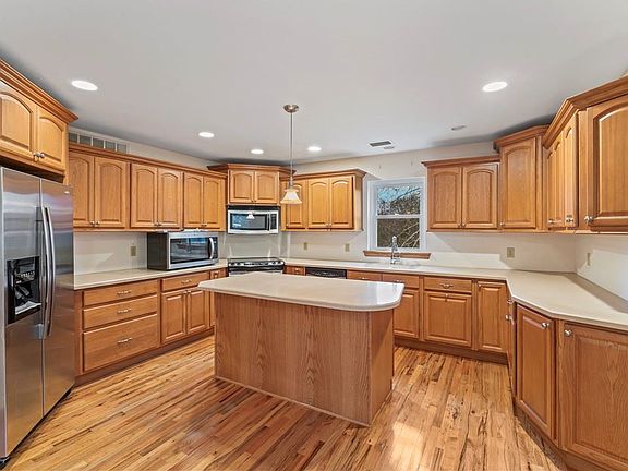 This 4-bedroom home is in Canon Mac Schools. The addition includes a master suite with a laundry area, walk-in closet, and ensuite with a walk-in shower. The kitchen was installed in 2009 with a Corian counters island where you could put bar stools, recessed lighting, crown molding, and stainless appliances. The Living room and first level have hardwood floors. The large dining room has french doors leading to the family room. The three other bedrooms are on a separate wing for privacy. The lower level has a game room with a brick log-burning fireplace and a full bath. The oversized garage has tall doors for your truck!