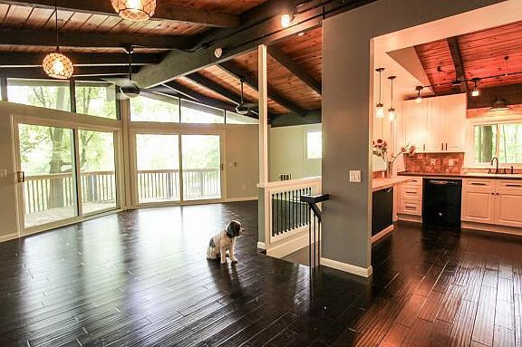Live above the canopy in this 2 BR, 2 Bath Contemporary with a treehouse feel. 1.88 acres. PLUS sale includes shared ownership in 12.4 acre forever wild land. Open Concept. Walls of windows bring the outdoors in this modern nest!Wrap-around Deck. Custom white kitchen with soft-close cabinets, stainless appliances, tile backsplash and custom lighting. Hardwood floors. Vaulted ceiling. Stone fireplace in Family Room. Master Bedroom has Luxury Tile Bath. Patio. New 30-Year Roof. Minutes to Cornell & Downtown!